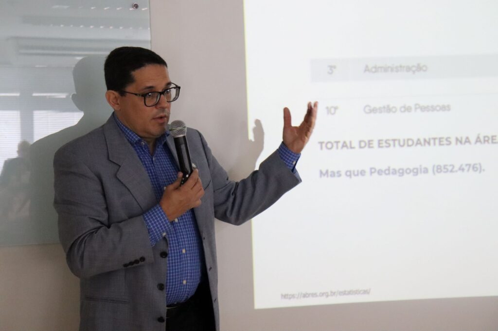 O evento contou com a palestra do Adm. Dr. Júlio Rezende, Diretor da Câmara de Formação e Educação do Conselho Federal de Administração (CFA), que abordou o tema “Estrategicamente presencial – Como reconquistar o interesse dos alunos”. Pesquisador, empreendedor e professor da UFRN, Rezende destacou métodos para aumentar o engajamento discente e elevar a qualidade do ensino em Administração.