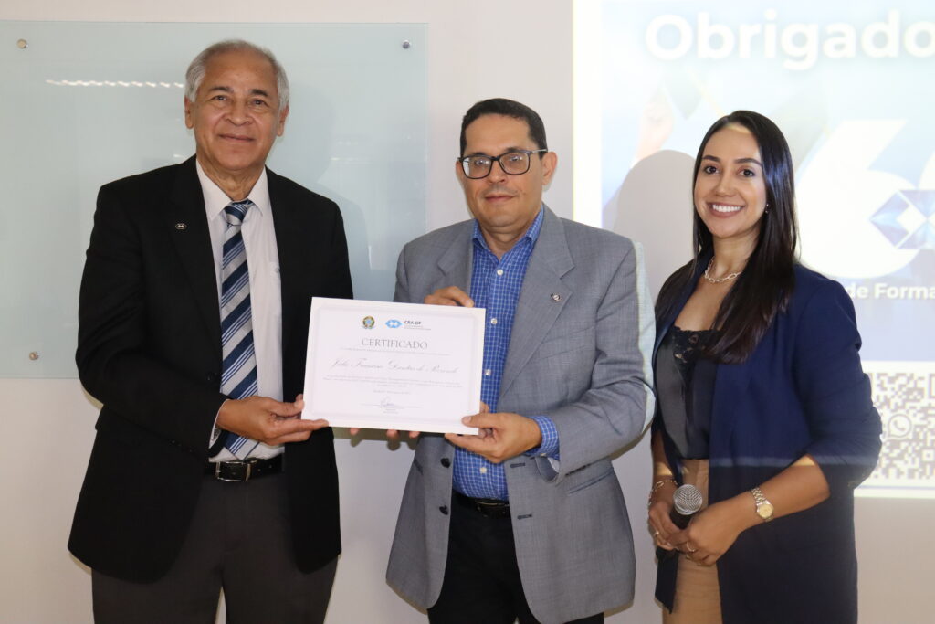 Entre os presentes, estavam o Diretor de Desenvolvimento Profissional do CRA-DF, Adm. Sebastião Vitalino, o Diretor de Administração e Finanças, Adm. Ivan Calderon, o Vice-presidente do CRA-DF, Adm. Argeu Ramos, e demais conselheiros da autarquia.